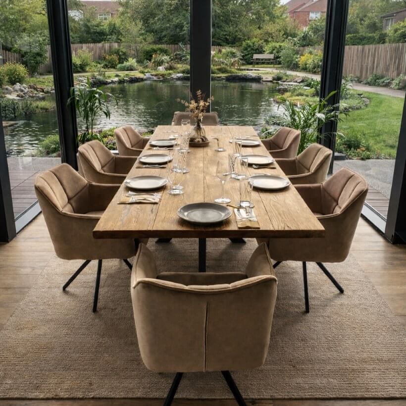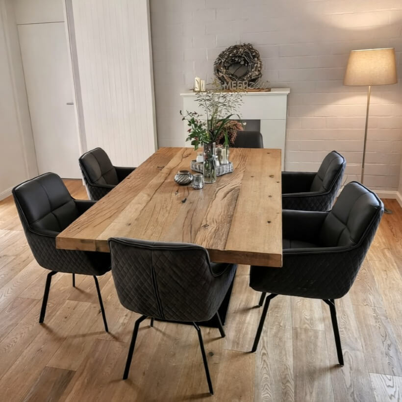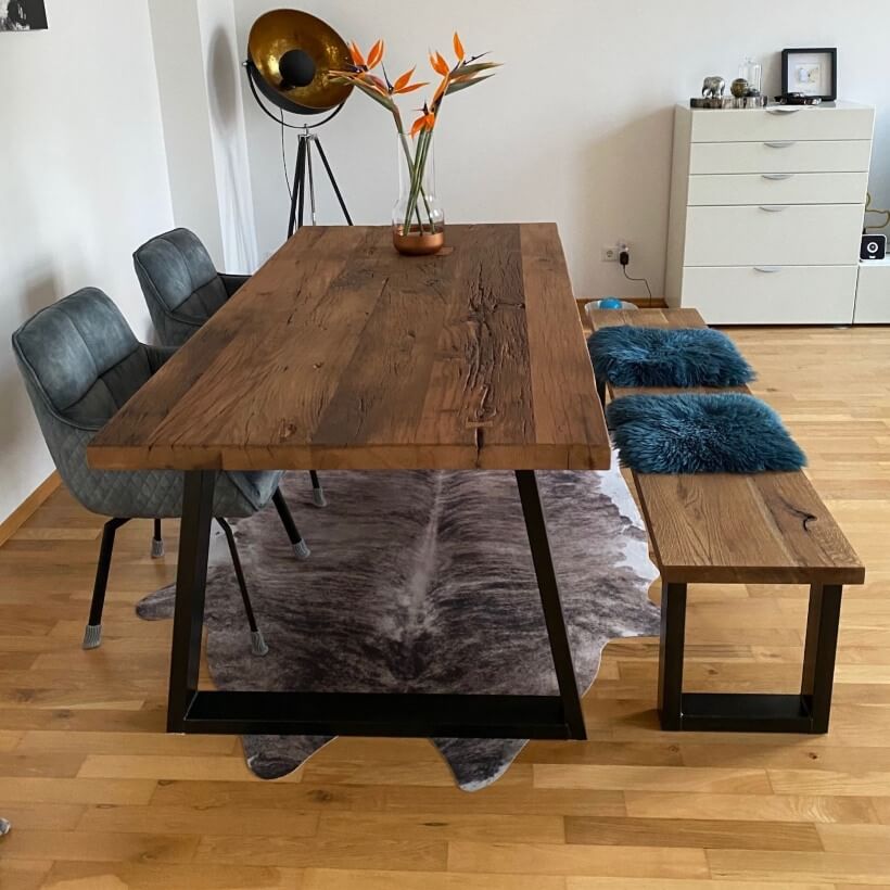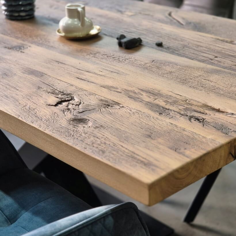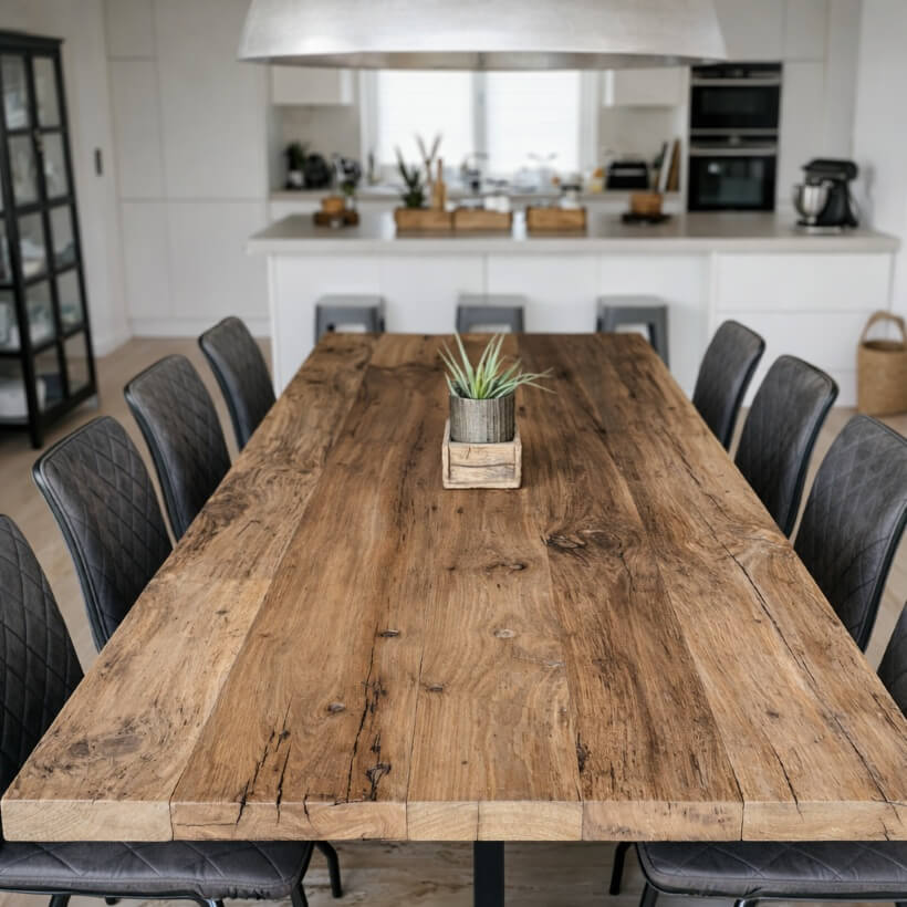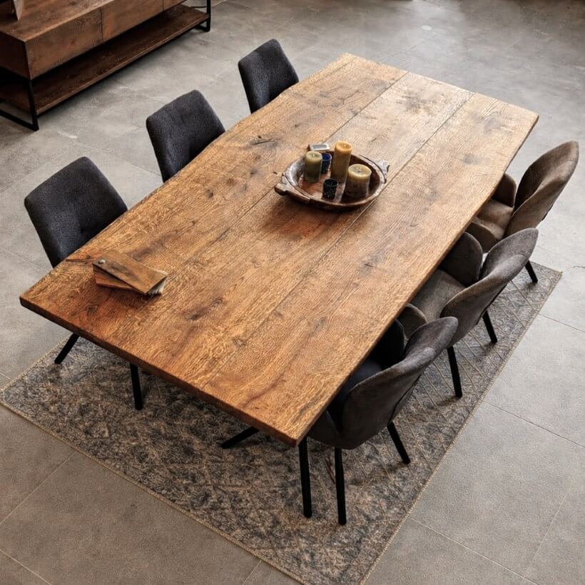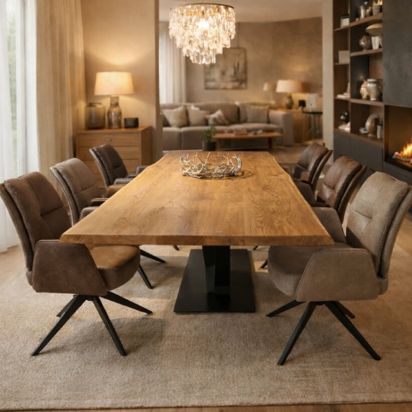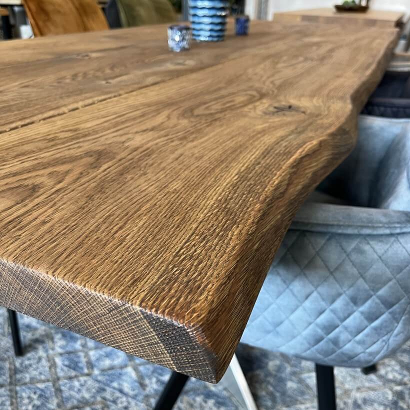 Unsere Leidenschaft gilt der Erschaffung von Möbeln mit natürlicher Schönheit und Ausdrucksstärke. Als Spezialist für massive Eichentische stehen wir für Handwerkskunst und Hingabe. Jedes Stück in unserem Sortiment zeichnet sich durch breite Lamellen, echte Baumkanten (Live Edge) und von Hand gealterte Oberflächen aus, die Charakter verleihen. Zusätzlich bieten wir Platten aus Altholz an, die eine einzigartige Geschichte erzählen.