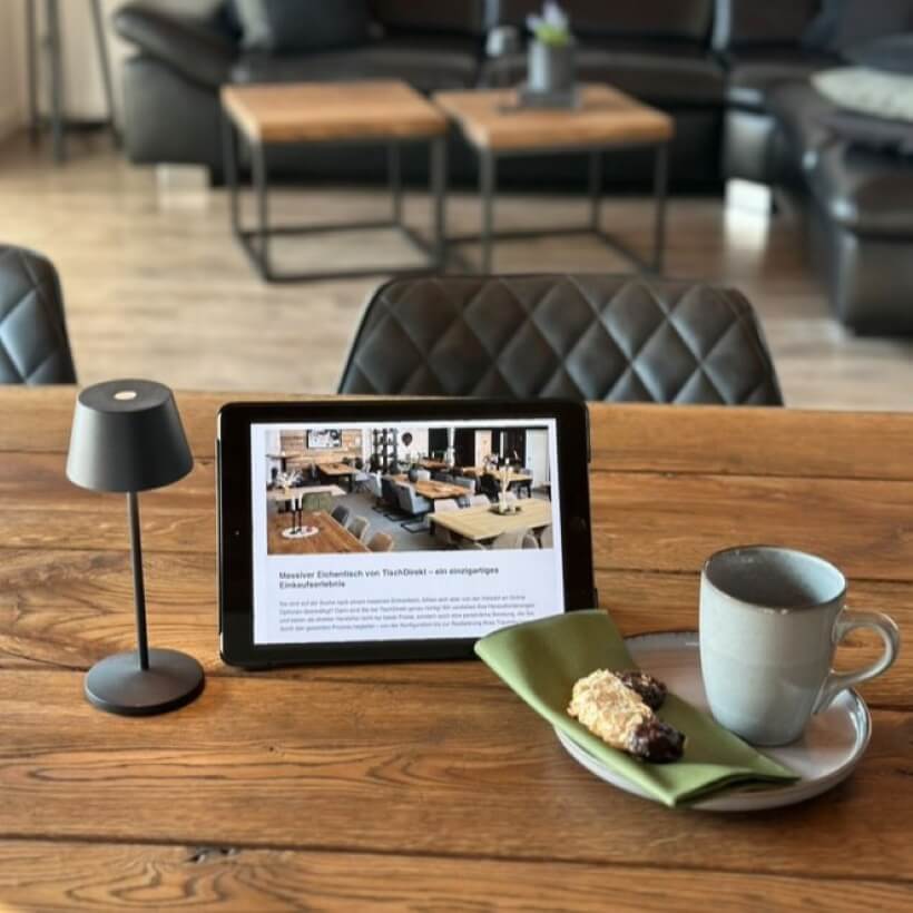 Besuchen Sie uns in unserem Showroom oder vereinbaren Sie einen unverbindlichen Live Videoberatungstermin, um mehr über unsere Produkte zu erfahren. Mit Tischdirekt.de setzen Sie auf Qualität, Handwerkskunst und Nachhaltigkeit. Machen Sie Ihren Eichentisch zum Herzstück Ihres Zuhauses oder Unternehmens und erleben Sie die zeitlose Schönheit von Massivholz jeden Tag aufs Neue.