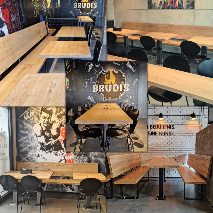Dank ihrer Langlebigkeit sind massive Holztische eine nachhaltige Investition für den gewerblichen Bereich. Sie verleihen Räumen Charakter und Individualität und setzen ein ästhetisches Statement. Die warme und natürliche Schönheit von Massivholz schafft zudem ein wertiges und ruhiges Arbeitsumfeld. Die charakteristischen Maserungen und Farbtöne von Eichenholz schaffen eine Verbindung zur Natur und verleihen jedem Raum eine angenehme und einladende Atmosphäre.