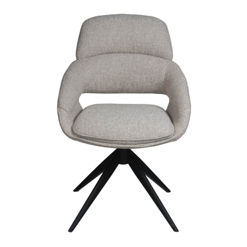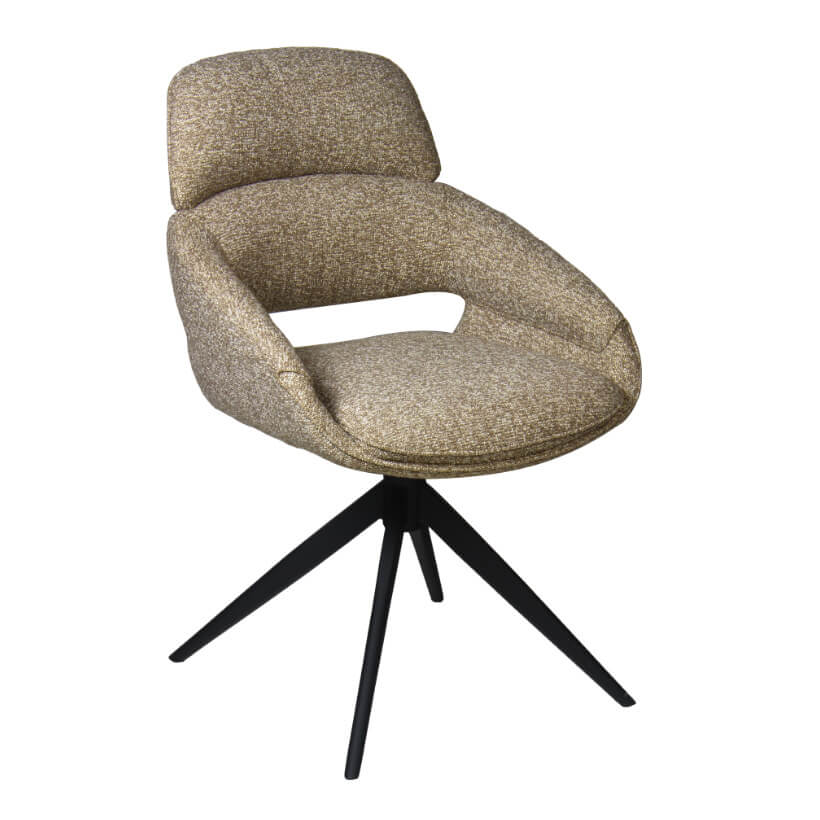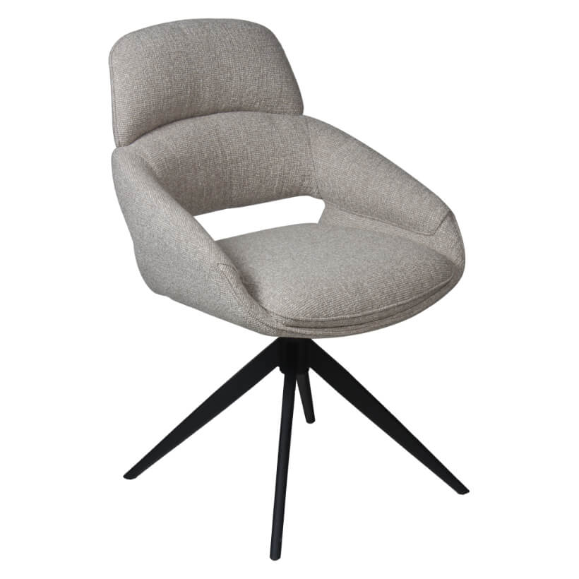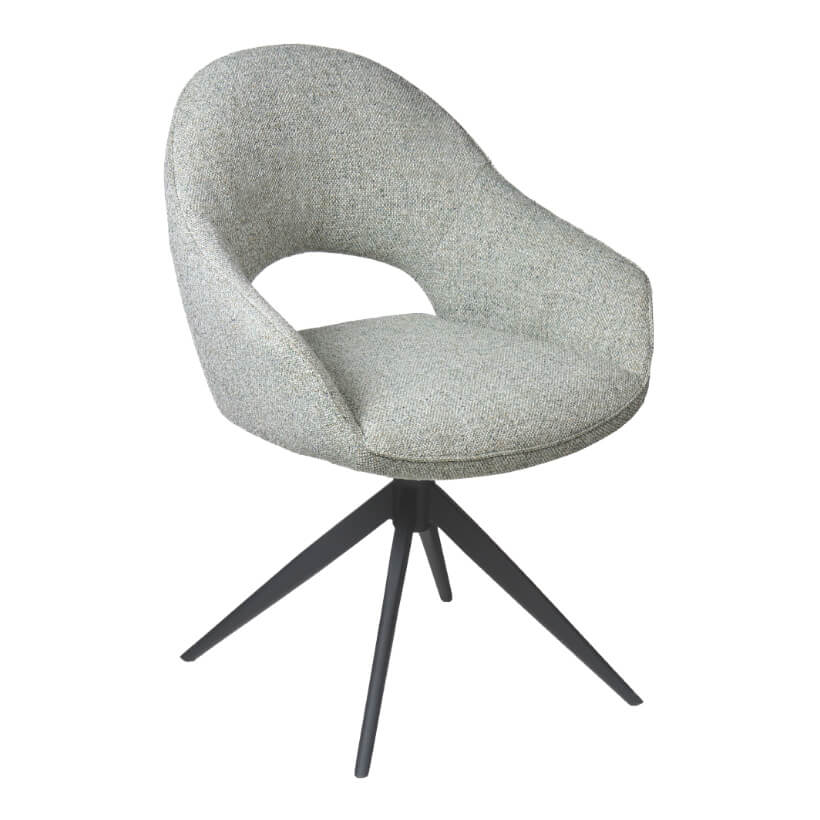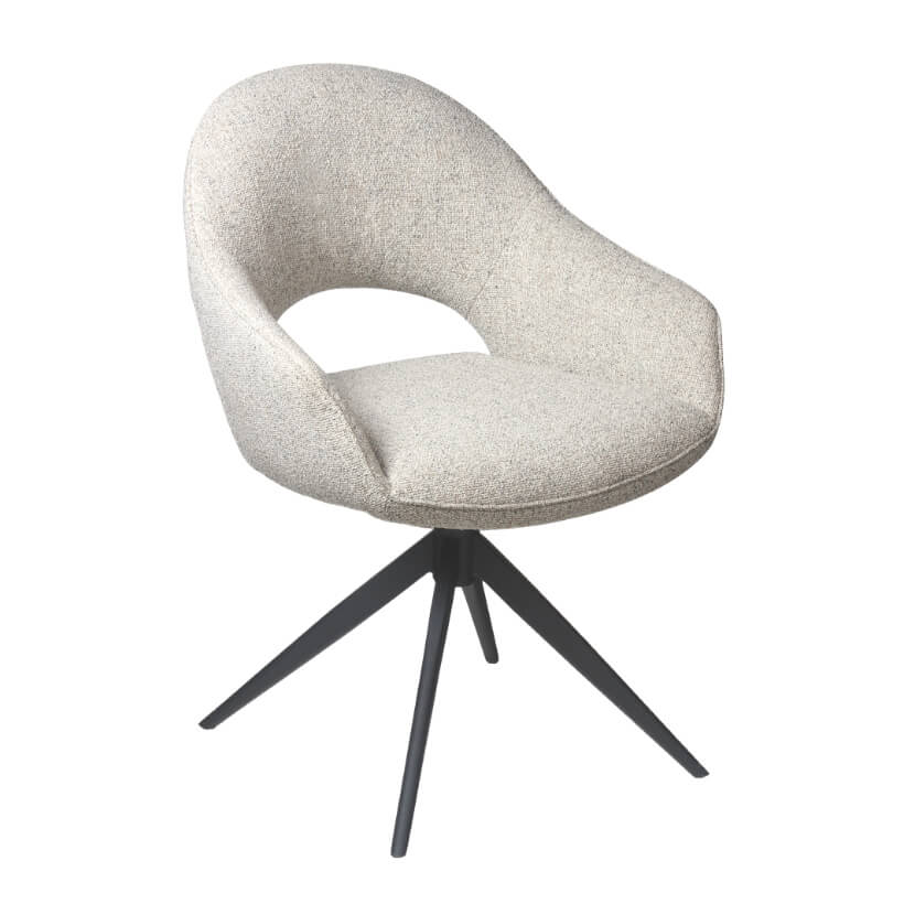 Der 360-Grad-drehbare Stuhl Max kombiniert den Komfort eines Sessels mit der Funktionalität eines Esszimmerstuhls und passt perfekt in moderne Wohn- und Arbeitsräume. Mit seinem eleganten, gepolsterten Schalendesign und Kreuzgestell aus Stahl, bietet er sowohl Stil als auch Stabilität. Seine großzügige Breite und hohen Armlehnen sorgen für zusätzlichen Bequemlichkeit, ideal als Esszimmer-, Konferenz- oder Bürostuhl.