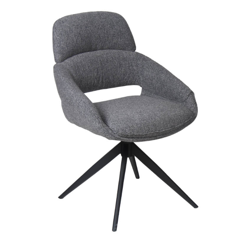Schlank und modern im Design. Der Esszimmerstuhl Ella zeichnet sich durch seine elegante Gestaltung mit einem hochwertige Webstoff in drei klassichen Grautönen aus. Mit einer Breite von 55 cm lässt sich dieser 360° drehbare Stuhl hervoragend platzsparend in Ihre Einrichtung integrieren und lädt mit der gepolsterten Sitzfläche für lange gemütliche Abende mit Familie und Freunden ein.
