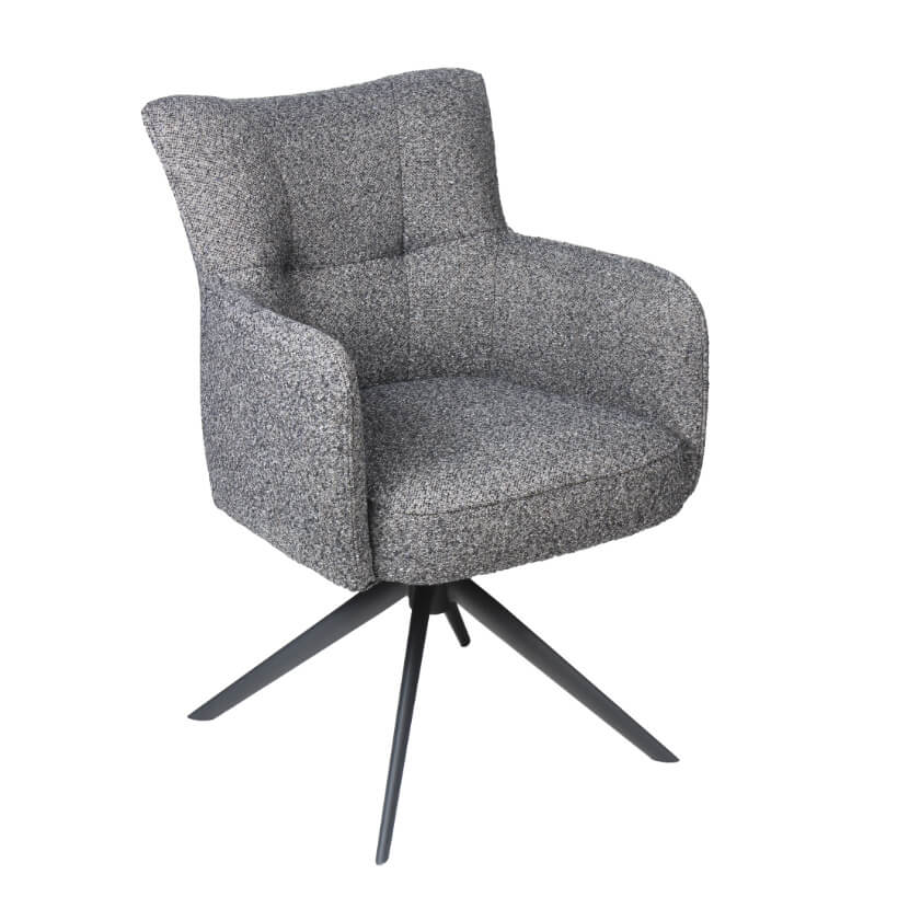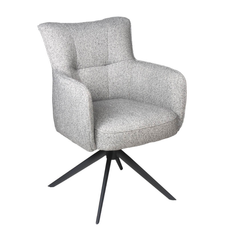 Zeitlos, komfortabel und funktional. Der Drehstuhl Nora überzeugt durch seine gut gepolsterte Sitzschale mit Armlehnen und Hochwertigem Stoffbezug. Die 360° Drehfunktion sowie das elegante Sternfußgestell sorgen für maximale Flexibilität und einen sicheren Stand. Dank seines zeitlosen Designs fügt sich der Stuhl harmonisch in Wohn- und Essbereiche ein und setzt stilvolle Akzente.