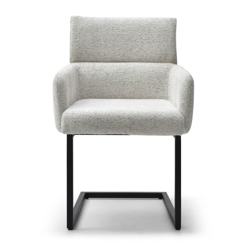Der Freischwinger John überzeugt durch den eleganten Webstoff, sein schwarzes Metallgestell, und einer puristischen, modernen Optik. Die komfortabel gepolsterte Sitz- und Rückenfläche sowie das leicht nachgebende Gestell verbinden edles Design mit höchstem Sitzkomfort.