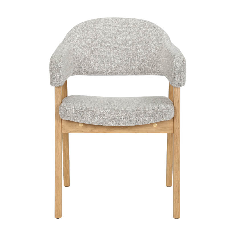 Mit einer geschwungenen Rückenlehne, weich gepolsterter Sitzschale und einem eleganten Design, beeindruckt dieser Stuhl nicht nur optisch, sondern bietet auch einen garantiert angenehmen Sitzkomfort. Der offene Übergang zwischen Arm- und Rückenlehne verleiht hierbei eine moderne und offene Ausstrahlung, was dem Stuhl zu einem Highlight in Ihrem Essbereich macht.
