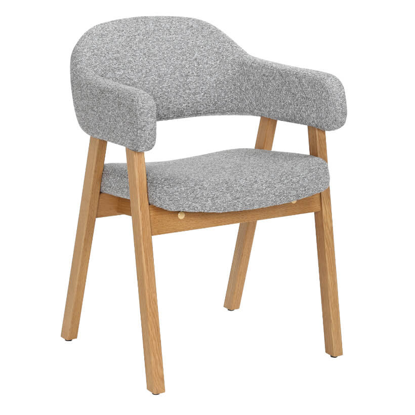 Die weich gepolsterte Sitz- und Rückenfläche sowie die harmonisch geformten Armlehnen verleihen diesem Massivholzstuhl eine ideale Balance aus Komfort und stilvollem Design. Das professionell gearbeitete Holzgestell aus massivem Eichenholz unterstreicht die hochwertige Verarbeitung und verleiht dem Stuhl eine natürliche, exklusive Ausstrahlung.